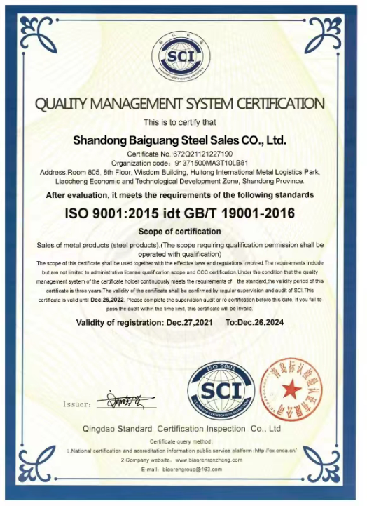 Shandong Baiguang Special Steel Co., Ltd. is a large steel holding company. As the foreign trade window of China's steel industry, the company has extensive exchanges and friendly cooperation with domestic and foreign manufacturers on the basis of equality, mutual benefit and win-win cooperation, which has greatly supported China's steel industry. The healthy and rapid development of industry. Shandong Baiguang Special Steel Co., Ltd. is a comprehensive company integrating steel production, processing, trade, and logistics distribution. A specialized, new and high-tech enterprise with international high-end technology and independent innovative intellectual property rights.